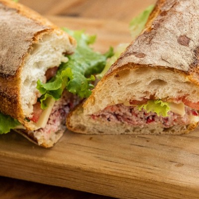 Baguette campesina + 2 ingredientes de tu eleccion (quesos y carnes) + aderezo Deli Lou